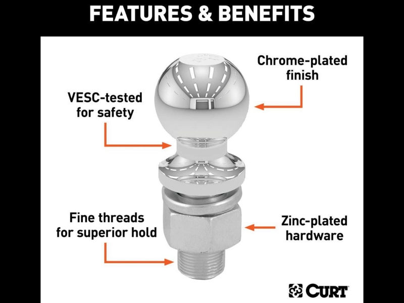 2"拖車球,是用於各種每規拖車系列 Ball Capacity 6000 LB Ball Diameter 2 IN Shank Diameter 1 IN Shank Length 3 IN Shank Rise 0 IN Torque 250 FT LB Finish Chrome color Silver